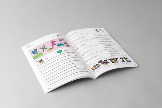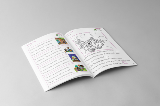 Level Three of the Whole Phonics series covers glued sounds (-ing, -ink, -ang, -ank) and beginning blends (L, R, S-blends). Accurately reading and spelling with glued sounds and blends can be a challenge for beginning readers, so Level Three gives children an opportunity to develop this skill while enjoying a fun story with a complete narrative arc!
