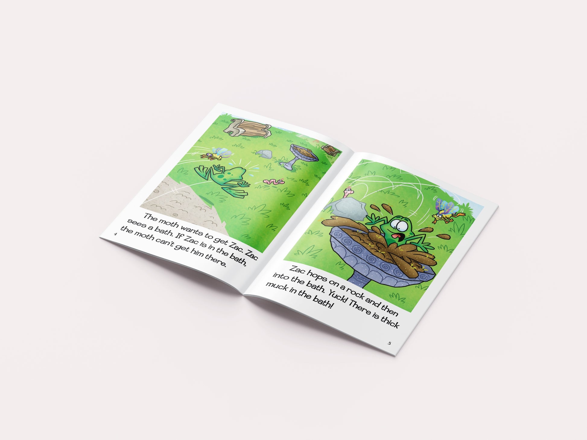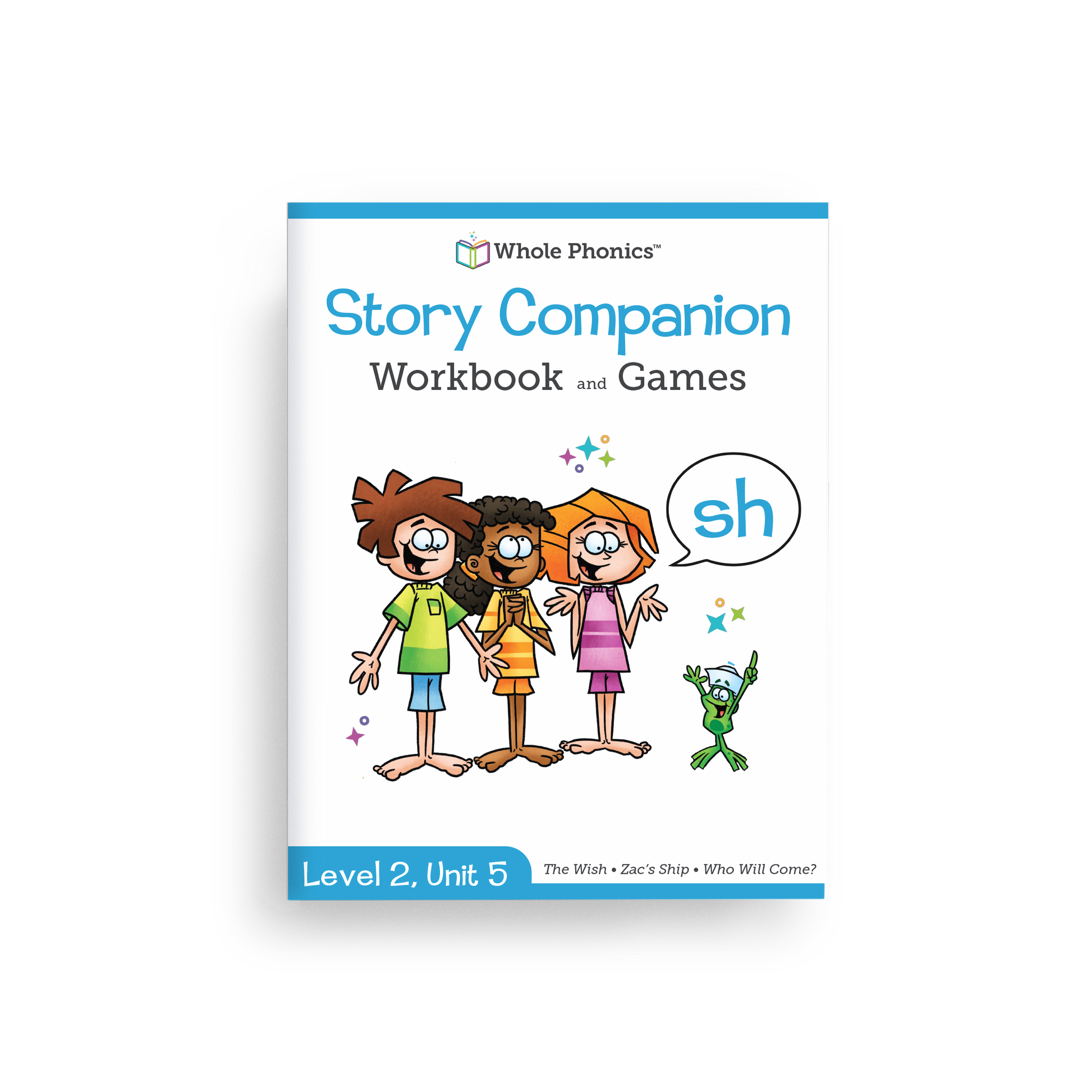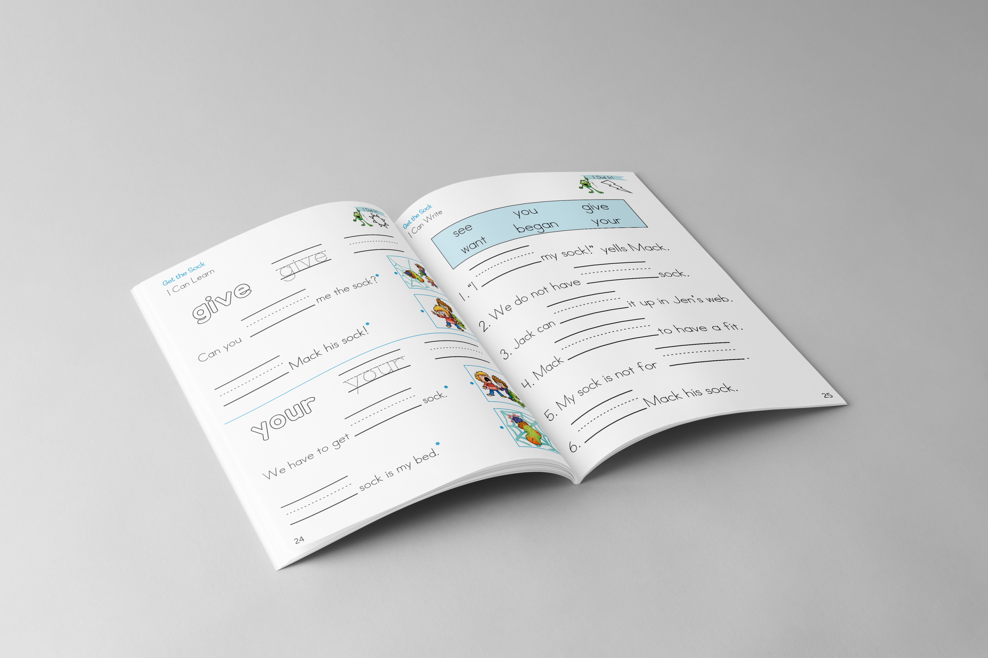 The complete set of decodable books reinforce digraphs in full-length text. The inside cover of every book includes the target sound, high frequency words, and special vocabulary needed for students to successfully read out decodable books. Since our books contain a complete narrative arc, three comprehension questions are also included. Workbook pages are dedicated to each book. The workbook activity pages reinforce student’s reading and spelling skills at the word, phrase, and sentence level. Furthermore, the workbooks include exercises for high-frequency words to provide extra practice. One unique, super fun game is also included to support each book. The workbook’s purpose is to help children develop a sense of achievement at an independent level.