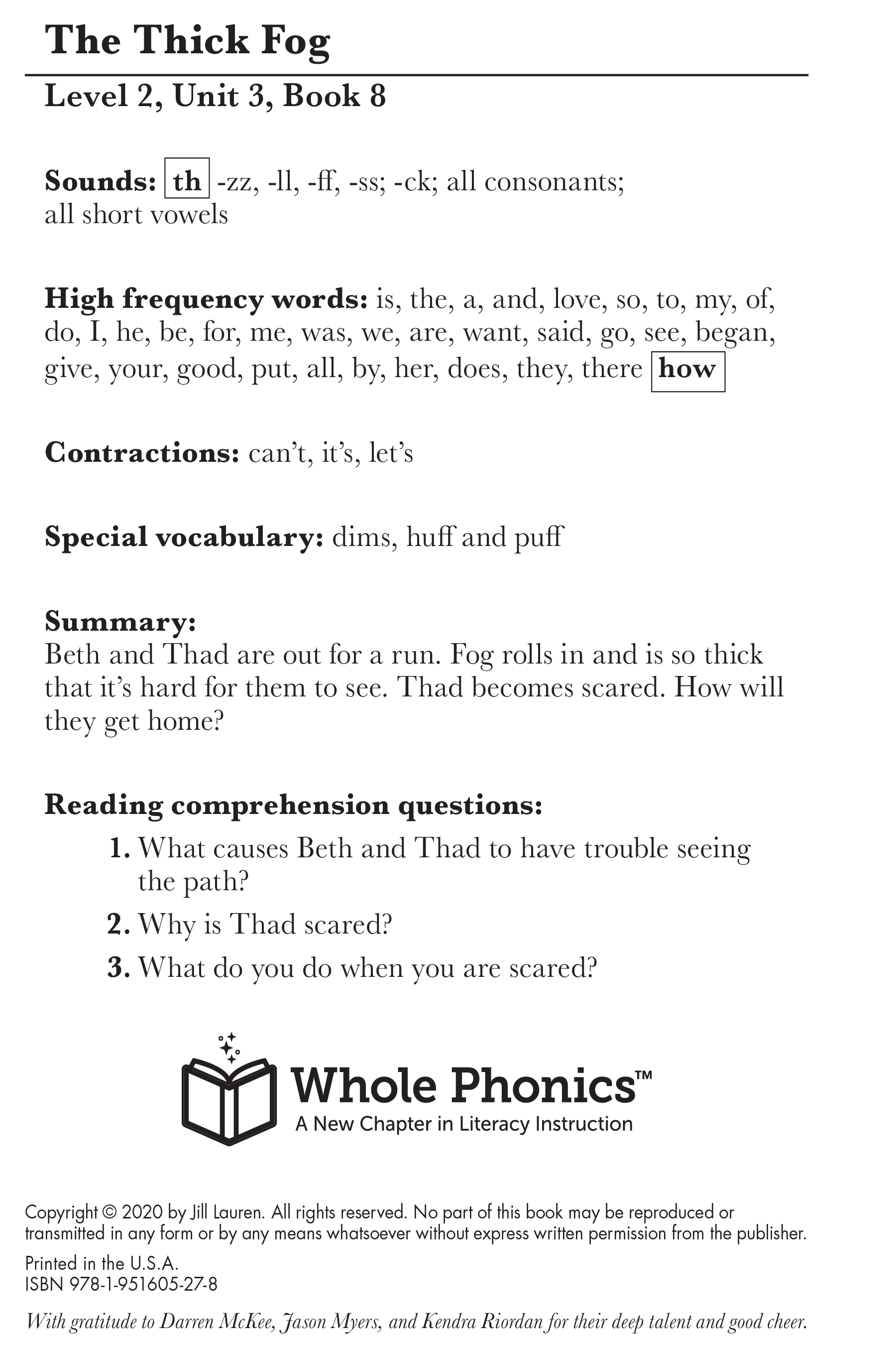 In this book, Beth and Thad are out for a run. Fog rolls in and it's so thick that it's hard for them to see. Thad becomes scared. Your students will read on to find out how they will get home. This book includes three reading comprehension questions and is filled with "th" words such as "there," "this," and "they."