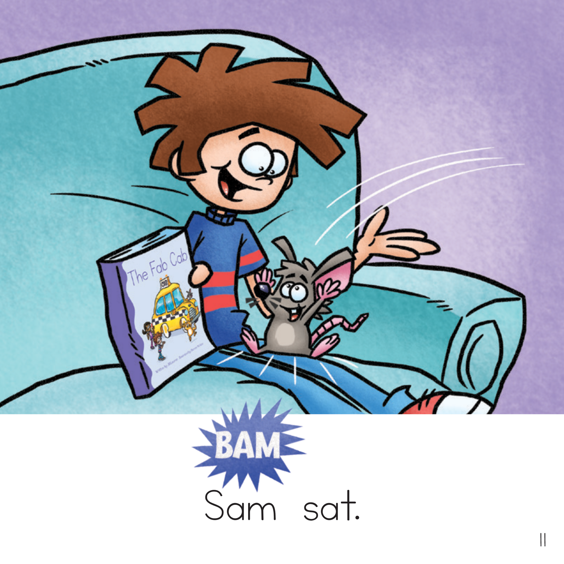 The purple Off We Go! Series consists of 8 books, Level One, Two, and Three consist of 15 books, and Level Four Consists of two chapter books. The Off We Go! books target the consonants and short a. The Level One books focus on short vowel sounds in CVC words, the Level Two books reinforce digraphs (two letters representing one sound), and the Level Three books build fluency with glued sounds and consonant-consonant-vowel-consonant (CCVC) words (i.e., beginning blends), and Level Four teaches ending blends, clusters, and compound words.