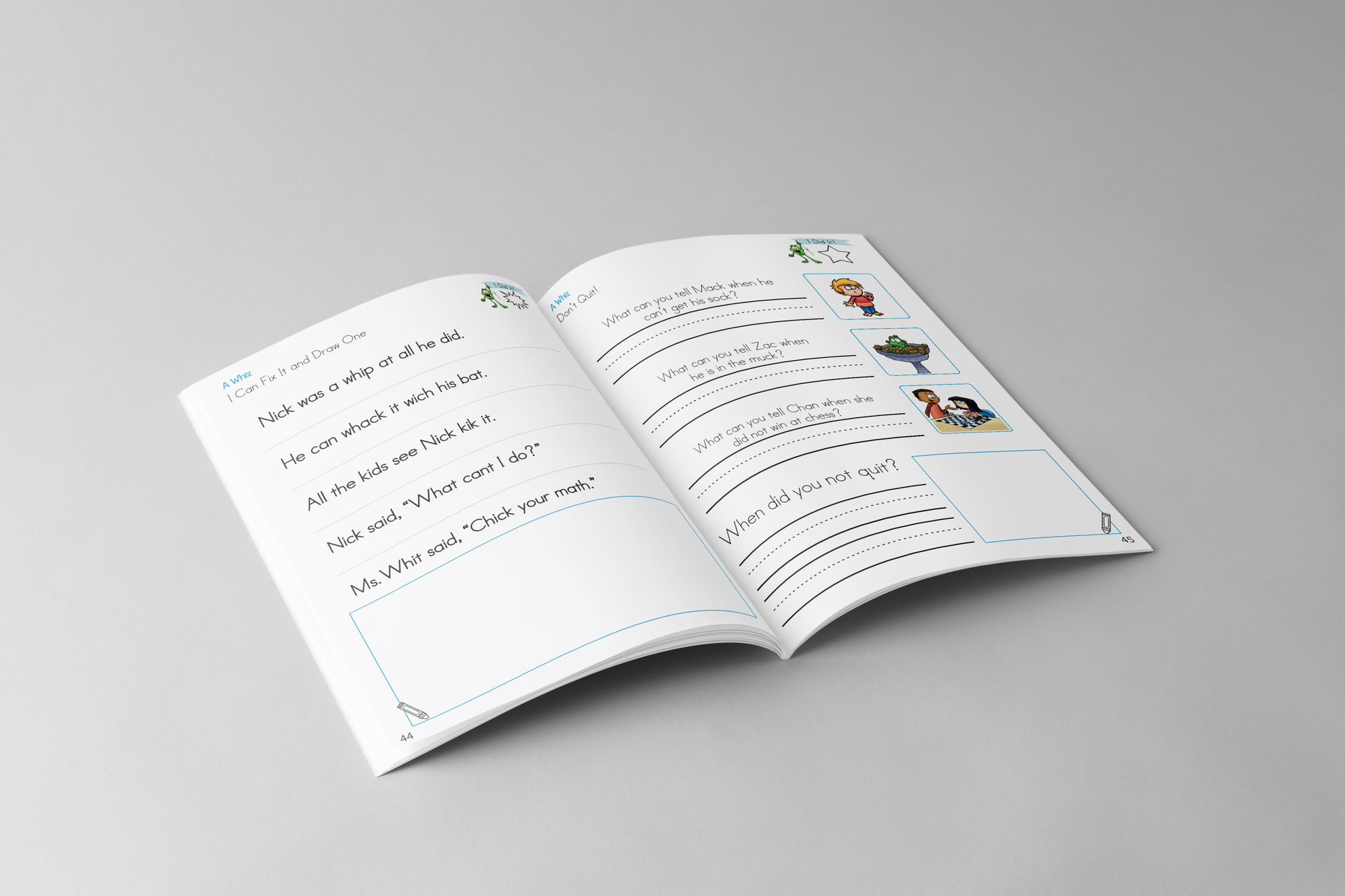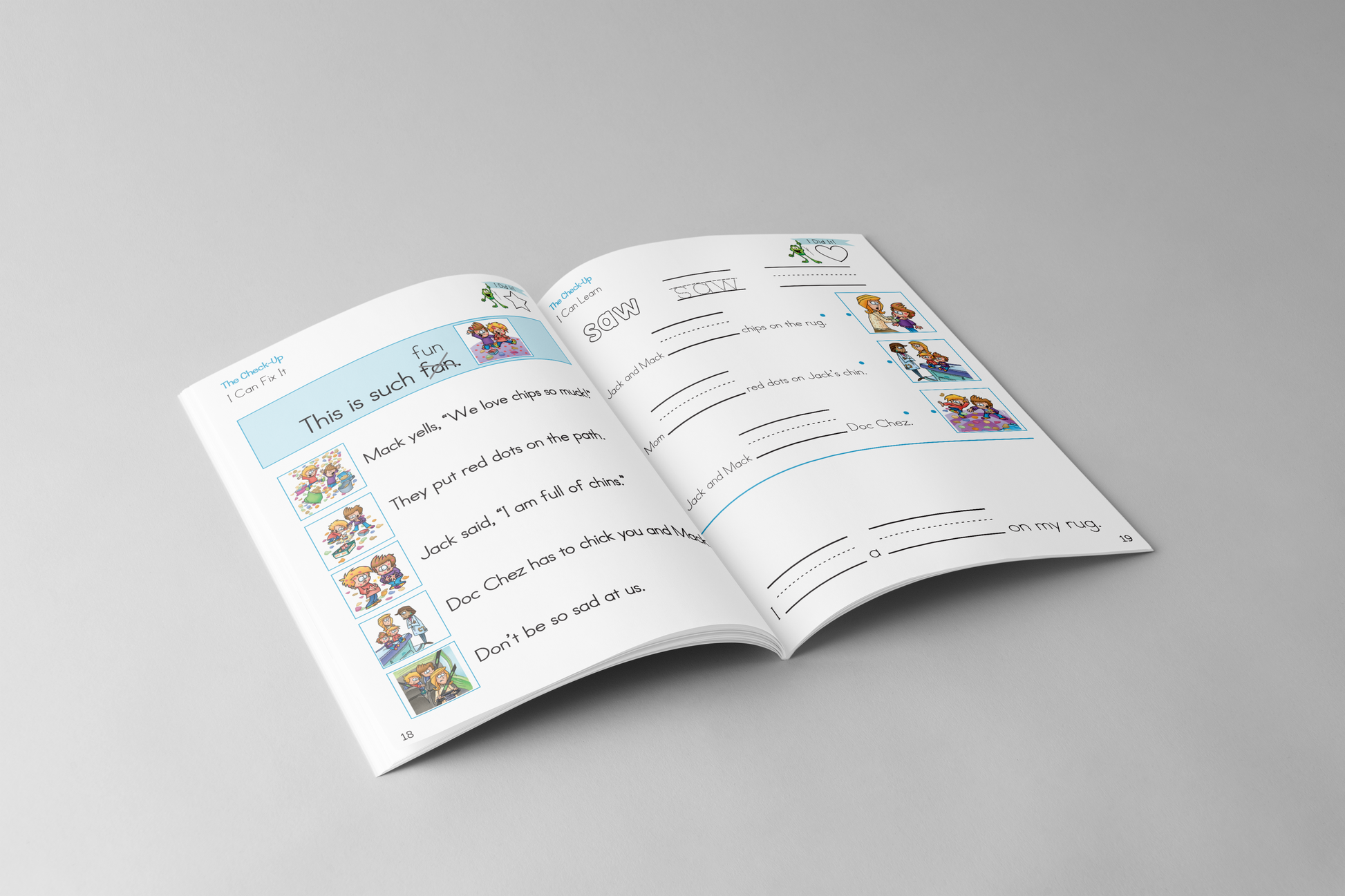 Once children have finished reading each decodable book, they can use the workbook to reinforce their reading and spelling skills at the word, phrase, and sentence level. Furthermore, the workbooks include exercises for high-frequency words to provide extra practice. The workbook's purpose is to help children develop a sense of achievement at an independent level.