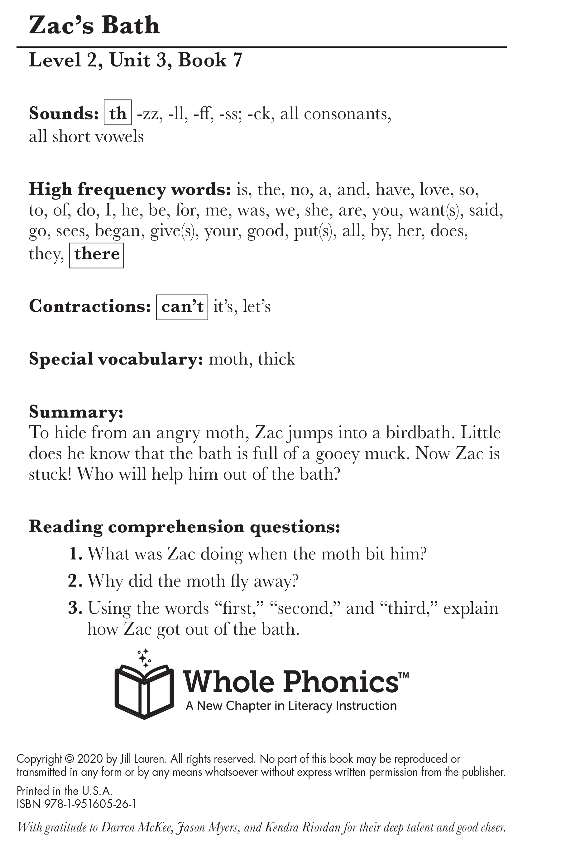 Our "Th Decodable Book Set" includes three vibrant and fun stories designed to assist early readers in honing their skills with the th digraph. The inside cover of each book includes reading comprehension questions and outlines the sounds, high frequency words, and special vocabulary needed for children to successfully read these decodable books.
