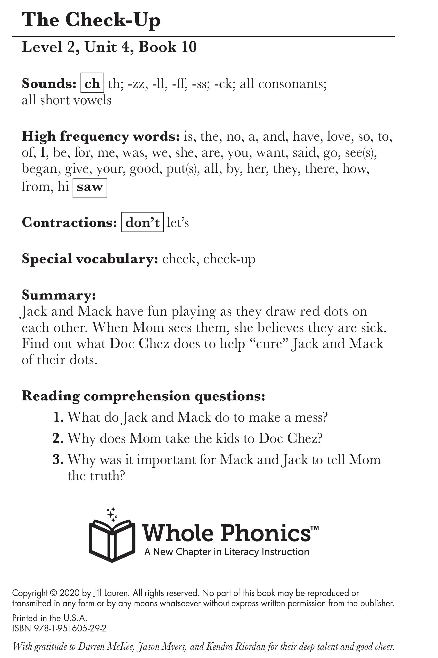 The Check-Up is a fun and colorful 16 page decodable book from Level 2 that emphasizes the ch digraph.