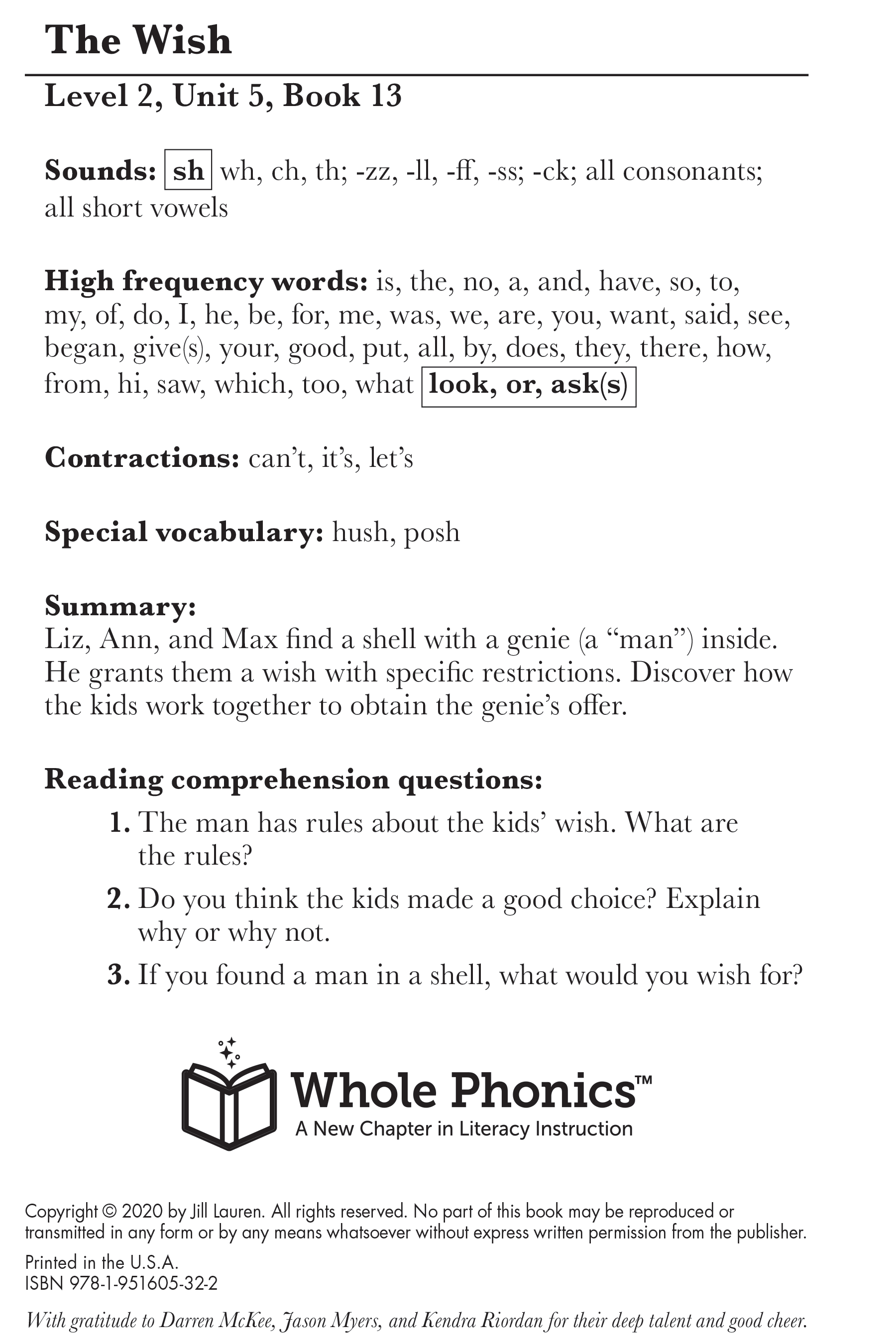 The Wish is a fun and colorful 16 page decodable book from Level 2 that emphasizes the sh digraph.